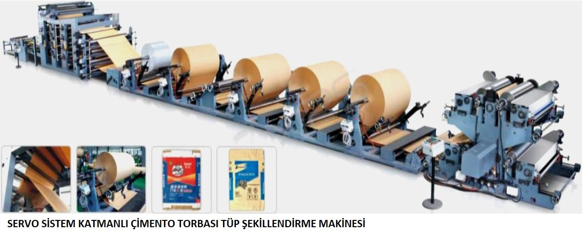 Çimento torbası üretimi için iki adet makine kullanılır. Bir adet Katmanlı Tüp şekillendirme makinesi ve Bir adet Torba tabanı ve ağzı yapma makinesi