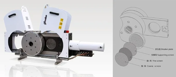 Filtre plakası bir süre üretildikten sonra, plastik eriyik akış kanalına girer ve önceden belirlenmiş bir basınç farkı oluştuğunda, ağ değiştirilmelidir. Net değişim çalışması, diğer sistem plakası çalışma pozisyonuna girerken filtre plakasının çalışma pozisyonundan çıkmasını isteyerek koçu hidrolik sistem içerisinde buna göre hareket etmeye zorlar ve ardından hareketi durdururken koruyucu kapağı açar. Kapının etrafındaki eriyiği ve filtre deliğini hızlıca temizlemek, eski filtre ağını çıkarmak ve işi tamamlamak için yenisiyle değiştirmek için aleti kullanın. Bu makine, ağın zamanında değişmesini sağlamak için filtrenin tıkanmasını izleyen bir ağ ön basınç sensörü ve ekranına sahiptir.